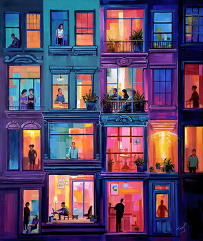In dit werk heb ik de levendige, gelaagde emoties van het stadsleven na zonsondergang vastgelegd, waar elk raam een verhaal vertelt. Met behulp van gedurfde acrylverf en expressionistische penseelstreken wilde ik verbinding en eenzaamheid tegelijk oproepen. Dit schilderij verlicht je ruimte met een warme, dynamische energie en trekt de kijker mee in een mozaïek van mensenlevens die zich achter gloeiende ramen ontvouwen. Het is een ode aan gemeenschap…