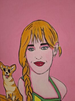 In dit kunstwerk heb ik de speelse band tussen mens, hond en kat vastgelegd met levendige acrylverf. Geïnspireerd door popart wilde ik vreugde en vriendschap weergeven met een charmante stripboekuitstraling. De strakke lijnen en het harmonieuze kleurcontrast creëren een vrolijke, energieke sfeer die je kamer direct opfleurt.
