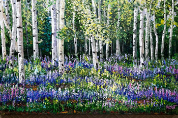 In dit levendige kunstwerk heb ik het dynamische samenspel van licht en schaduw vastgelegd in een espenbos, vol met wilde lupinen. Met behulp van acrylverf omarmde ik de impressionistische stijl om de levendige dans van kleuren en texturen over te brengen, wat een gevoel van vernieuwing en vitaliteit teweegbrengt. Dit werk weerspiegelt een oprechte waardering voor de ongeschreven schoonheid van de natuur en de vreugdevolle sereniteit die het teweegbrengt,… perfect om elke leefruimte te verkwikken met natuurlijke pracht en rust.