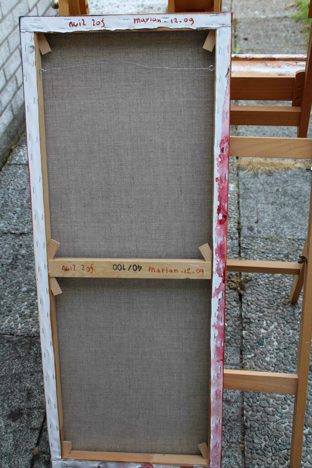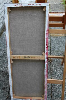 Kunstwerk op houten raamwerk. Klaar om op te hangen. Omlijsten op aanvraag.